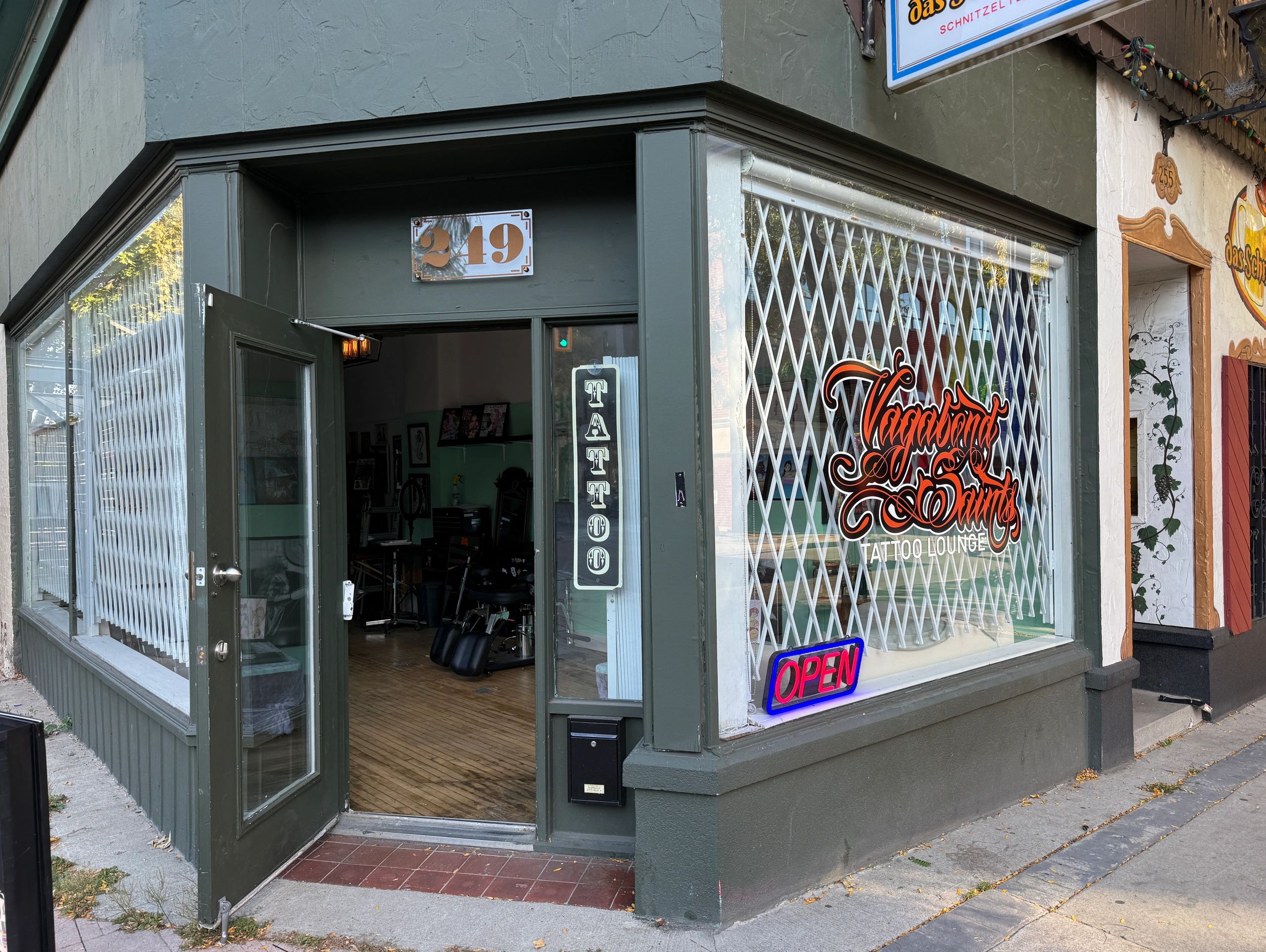 Vagabond Saints Tattoo Lounge is a tattoo shop with a nail tech that is also a mental health SafeSpace with an active hand in helping our community & city. Our shop is proud to be a small business-promoting, inclusive company. Award-winning, community-minded, and locally owned/operated.